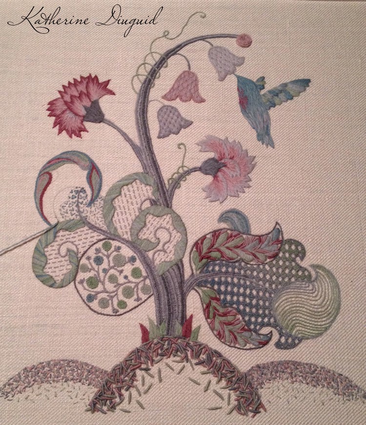 I am trying though and learning. I think my biggest struggle is actually working by myself on this. There is something comforting when you work with a group of ladies that are all learning together. Thinking of all the fun times over the past few years with the many different women that I've had the opportunity to stitch with . . .